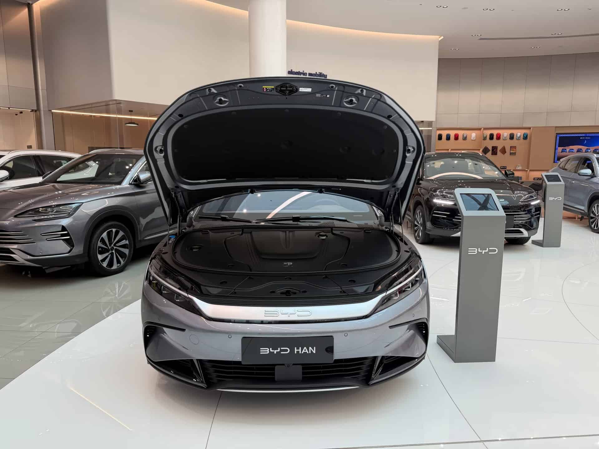 BYD Han được trang bị nền tảng e-Platform 3.0 và đặc biệt là công nghệ pin Blade Battery an toàn. Xe có hiệu suất mạnh mẽ, phiên bản cao cấp có thể tăng tốc từ 0-100 km/h chỉ trong 3.9 giây, cùng phạm vi di chuyển lên tới 650 km. Nội thất xe gây ấn tượng với màn hình xoay độc đáo và các vật liệu sang trọng như da Nappa, gỗ, nhôm. BYD Han được xem là đối thủ cạnh tranh của các dòng xe như Tesla Model S.