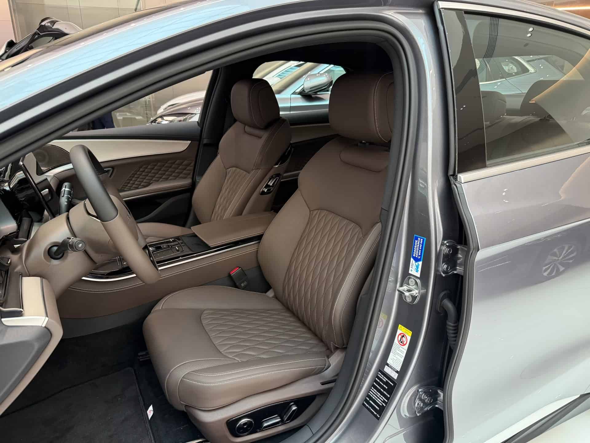 Ghế ngồi trên BYD Han được bọc da vân quả trám cao cấp với thiết kế công thái học, mang lại sự thoải mái tối đa. Ghế lái chỉnh điện 8 hướng kèm chức năng nhớ hai vị trí; ghế phụ chỉnh điện 6 hướng. Hai ghế trước đều có tính năng sưởi/làm mát và thông gió hiện đại. Hàng ghế sau rộng rãi với ba vị trí ngồi có tựa đầu riêng biệt, bệ tỳ tay trung tâm tích hợp hộc để cốc, cửa gió điều hòa riêng biệt và rèm che nắng chỉnh điện.