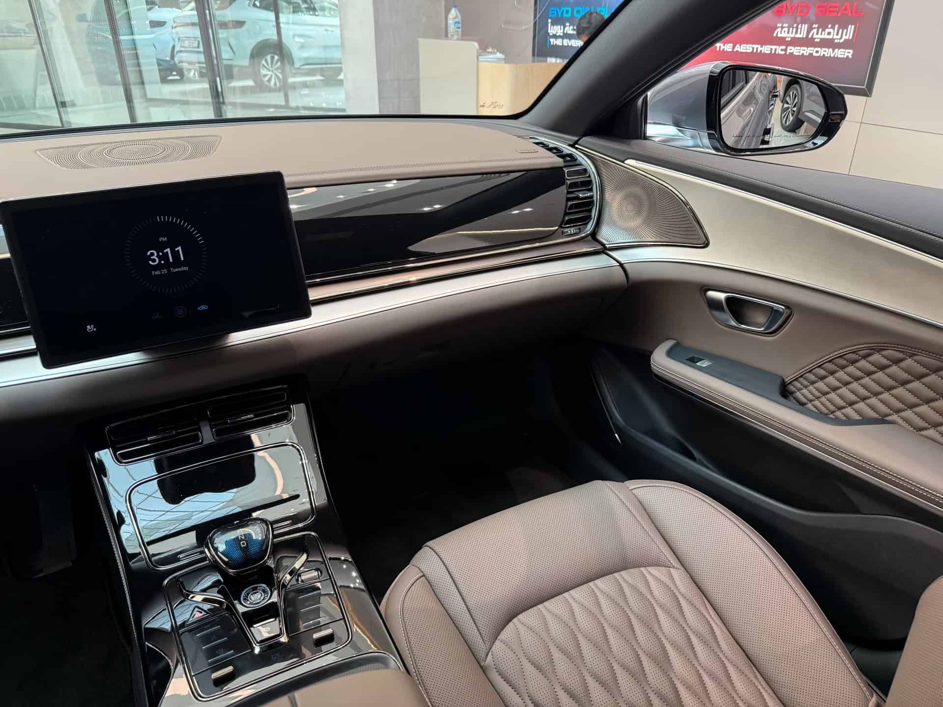 BYD Han trang bị màn hình giải trí Ultra HD kích thước 15,6 inch hỗ trợ hệ thống mạng thông minh DiLink 3.0 với khả năng điều khiển bằng giọng nói. Các tiện nghi khác bao gồm: